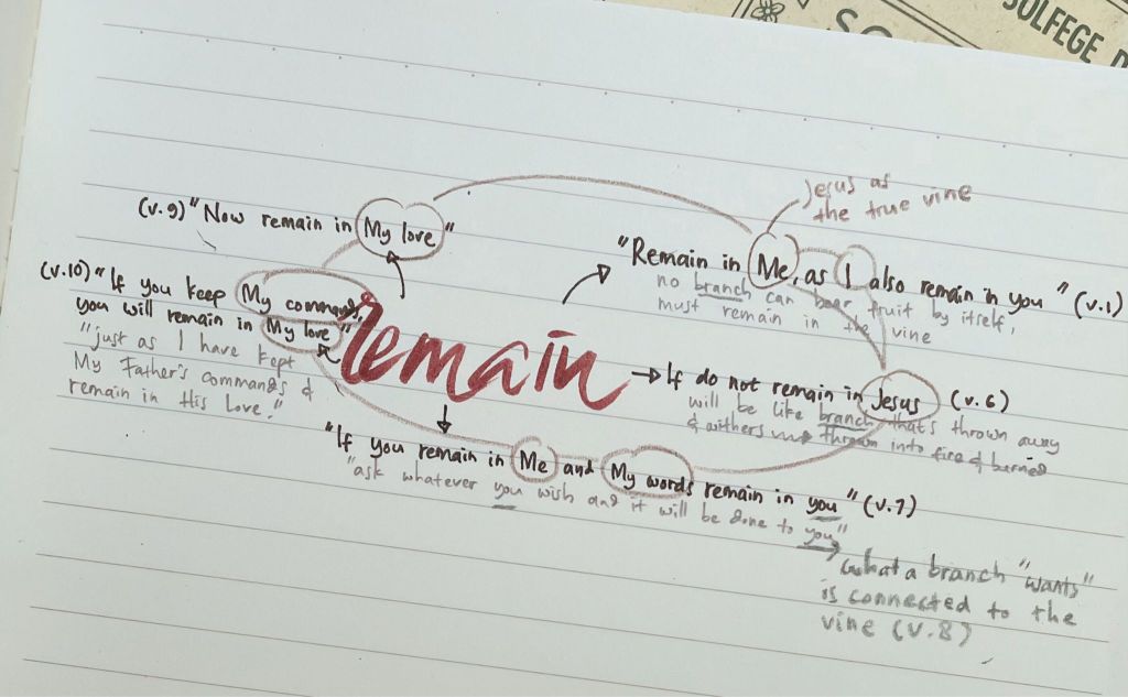 It was a common sense for the disciples to know how grapevines work and how its vinedresser operates. But something that was usual was now given a new meaning from their Teacher. As the vine, Jesus kept repeating the same word throughout this conversation in John 15. In the NIV translation, the repeated word is “REMAIN.”